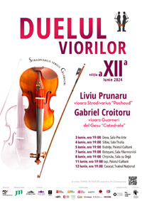 În luna iunie, violoniștii Liviu Prunaru și vioara Stradivarius Pachoud și Gabriel Croitoru, cu Guarneri del Gesù Catedrala (pusă la dispoziție de Muzeul Național George Enescu, în al cărui patrimoniu se află) se vor duela pe scene din Deva (3 iunie), Sibiu (4 iunie), Bistrița (5 iunie), Botoșani (7 iunie), Chișinau (8 iunie), Iași (11 iunie), Caracal (12 iunie). Aceeași întrebare de peste un deceniu: Stradivarius sau Guarneri? Întrebare cu răspuns cunoscut, pentru că există un singur câștigator în fiecare an - publicul din orașele în care ajunge Turneul Național Duelul viorilor, anul acesta la cea de-a 12-a ediție. În prima parte a concertului, cei doi violoniști vor prezenta publicului alternativ cele două opere de artă viorile pe care cântă. În cea de a doua parte, cei doi artiști vor fi prezenți pe scenă concomitent, spectatorii putând să savureze îmbinarea spectaculoasă a sunetelor celor două viori acompaniate de pian. Liviu Prunaru timp de 18 ani concertmaestrul orchestrei Concertgebouw Amsterdam și Gabriel Croitoru solist concertist al Filarmonicilor din Cluj-Napoca și Ploiești, profesor universitar la Universitatea Nationala de Muzica din Bucuresti, vor prezenta un program ce va conține piese de largă popularitate din literatura pentru vioară, printre care și Concertul pentru două viori în re minor de Bach, opus celebru în care cele două viori pot fi ascultate simultan.